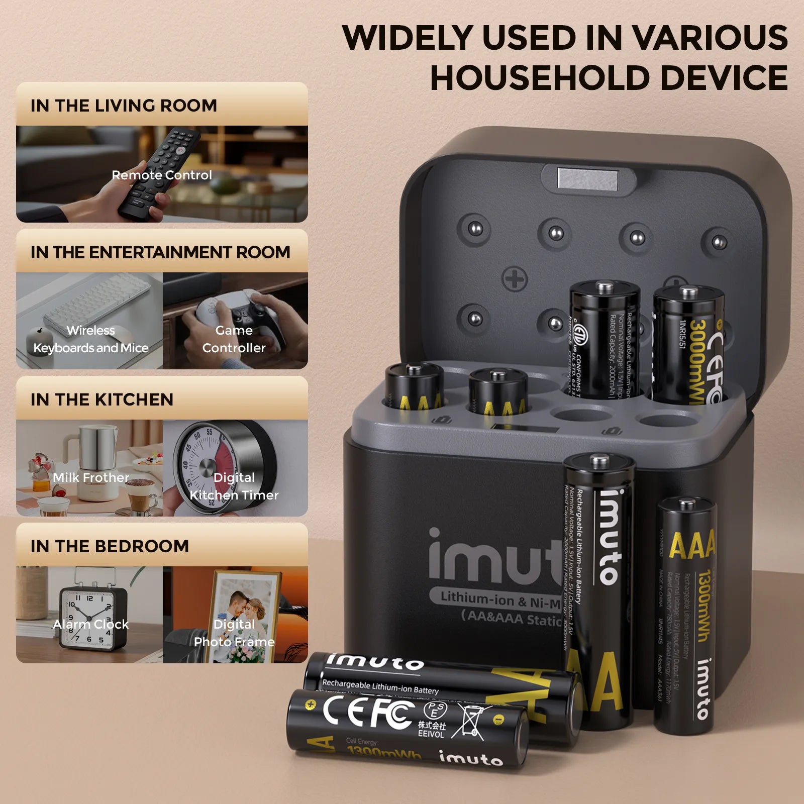 Combines Lithium & NiMH rechargeable batteries with constant 1.5V output, delivering reliable power until fully depleted for consistent device performance.